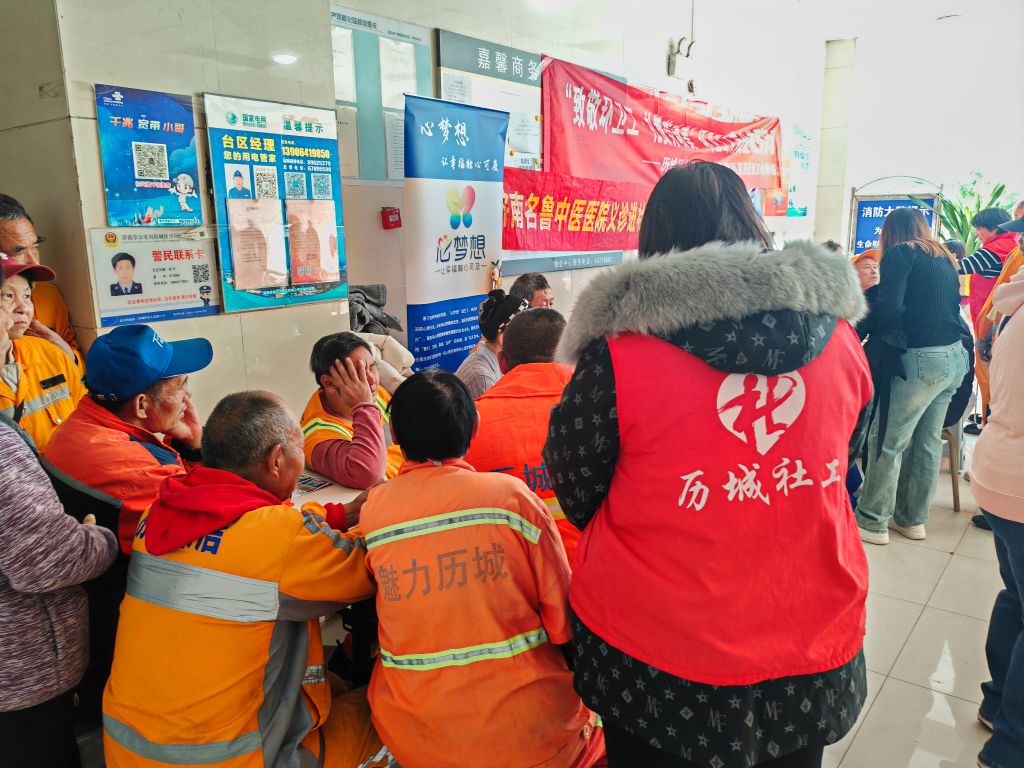 环卫工人是城市的美容师,他们为城市的整洁和美丽付出了辛勤的劳动。在第三十届山东省环卫工人节到来之际,山大路街道社工站与区直西社区和金桔健康携手,于10月24日上午为社区环卫工人组织了一次义诊活动,旨在关爱环卫工人的身体健康,让他们感受到社会的温暖与关怀。