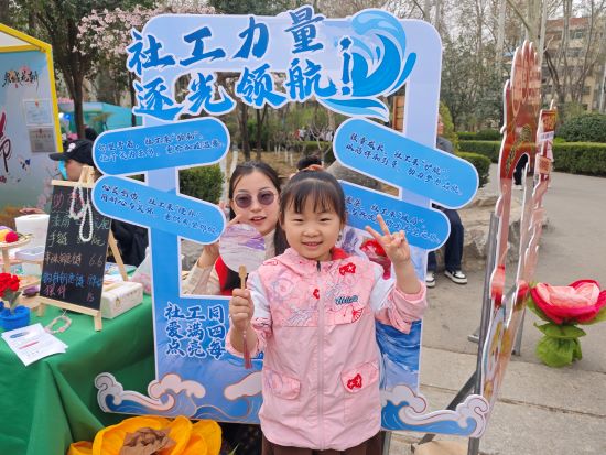 为了让这场义卖活动在花朝节的众多精彩中脱颖而出,社工们充分发挥创意,紧跟潮流热点。结合当下备受欢迎的哪吒和敖丙形象,精心制作了超炫的打卡牌,醒目地写上社工站的相关信息。这一妙招不仅引得游客们纷纷驻足拍照,更为社工站的宣传打开了一扇新窗口。