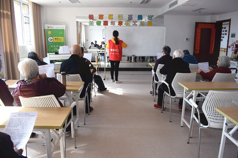 随着年龄增长,老人们的听力都有着或轻或重的下降。为保护老人听力、减缓老人听力下降速度,3月21日,悦银龄养老社工项目组在福利中心三楼老年大学开展了“揉压三穴,护牢听力”养生课堂活动。
