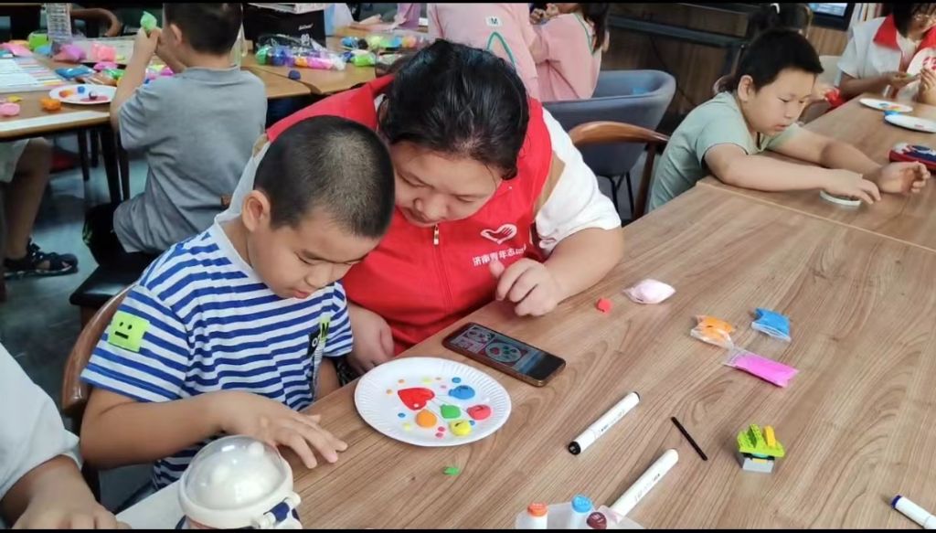 来自恒大绿洲第二社区及周边地区的20多名儿童,在社工的组织下,齐聚一堂,社工首先向儿童介绍建军节的由来与历史、讲述“南昌起义”的故事,增强儿童的民族自豪感和对历史的认识,后由志愿者带领儿童进行建军节主题手工活动,鼓励孩子们创作主题作品来纪念这伟大的一天。