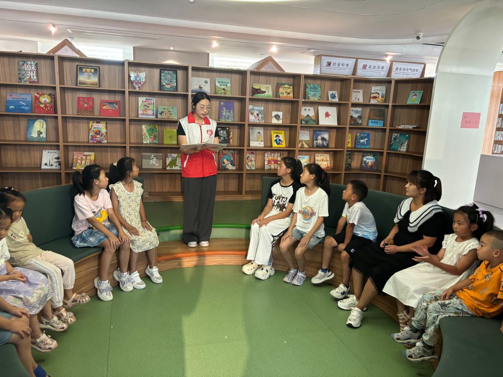活动当天,书香四溢,书房内错落有致的书架,还有那一本本精心挑选的书籍,都在静静地等待着小读者们的到来。随着孩子们的到来,现场立刻充满了欢声笑语,他们兴奋地穿梭在书架间,挑选着自己心仪的书籍,志愿者以生动有趣的语言,为孩子们讲述了一个个引人入胜的故事,引导他们感受文字的魅力,激发无限的想象力。社工化身为引导者与激励者,鼓励孩子们积极参与,勇敢表达自己的阅读感受,在“小小朗读者”环节,社工耐心指导孩子们如何表达情感,帮助他们克服紧张情绪,展现最好的自己。当孩子们取得进步或表现出色时,社工会及时给予肯定与表扬,激发他们的自信心与成就感。