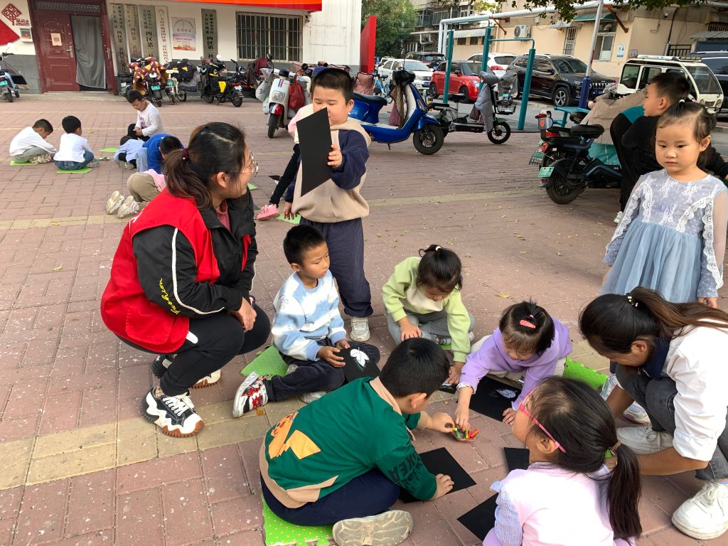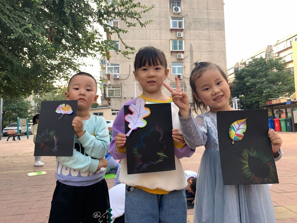 为使儿童亲近大自然,感知秋天的美丽与多彩,为儿童提供观察和探索自然的机会,11月2日,王官庄街道社工站在四区二居小广场开展“缤纷童年 创意无限”儿童树叶拓印画活动。