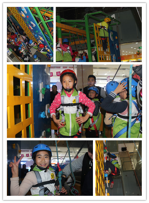 10点30分,所有小天使集合完毕,一起走进拓展园,开始今天的拓展训练活动。在拓展乐园工作人员的帮助下,大家纷纷穿上装备,戴上安全帽,为拓展活动做准备活动。大家首先进行了整合行多项项目的素质拓展。随后,大家有秩序排队开始挑战攀岩。在活动过程中,小天使们勇于挑战,出现许多意料之外的惊喜和成功。在每个项目中,小天使都用自己的耐心、勇气和毅力坚持到最后,为今天勇敢接受挑战的所有小天使点赞!