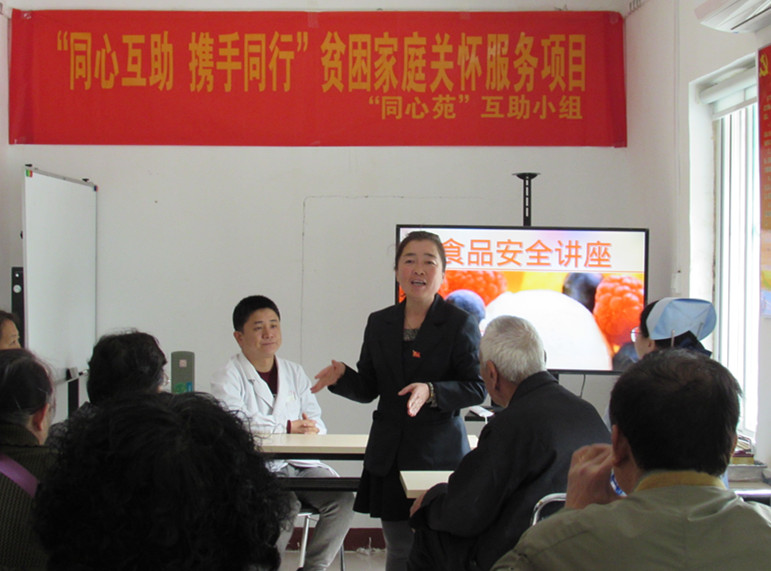 食品安全关系到我们老百姓的身体健康和生命安全,对青少年重要,对老年人也很重要。为了普及食品安全知识,提高居民的饮食安全意识,提升健康素质和生活质量,结合“同心互助,携手同行”贫困家庭关怀服务项目,4月21日上午9点,萤火虫社工项目组联合槐村街社区、“同心苑”互助小组共同举办食品安全讲座。济南市第五人民医院医师为居民们授课,辖区包括党员、居民20余人参与讲座。