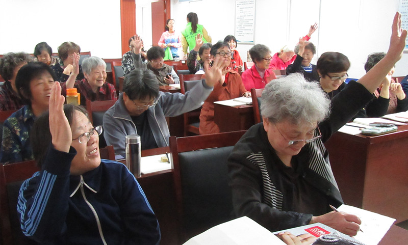 首先,社工利用“评价奖章”对老人的作业进行打分,利用鼓励性的评价增强老人的学习信心和兴趣。老人们课后作业都完成的非常认真,很多在小组学习的基础上,增加了自己的创新。接着社工带领老人进行课前热身活动“大风吹”,活跃课前气氛,增进相互间的互动和交流。不仅让老人充分体验了游戏的快乐,更增进了小组的凝聚力。