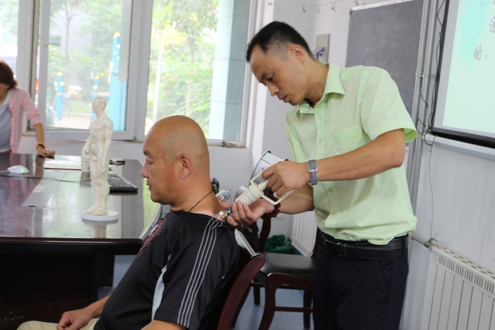 快乐一家社工:“保健——中医拔罐”纬北街道残疾人就业培训