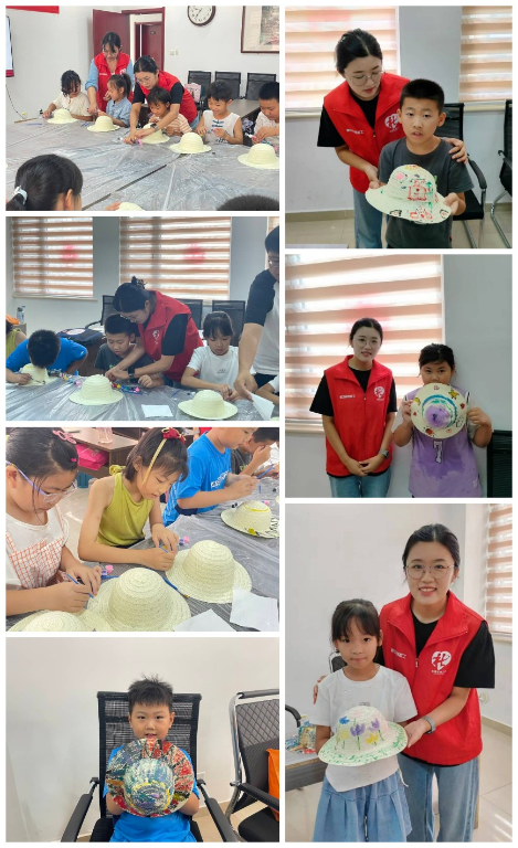 活动中,社工从草帽的组成部分、如何装饰绘制等做了详细的介绍。大家听的认真,充分发挥天马行空的想象力,稚嫩的小手在草帽上描绘出各种图案,让普通的草帽瞬间有了生命力。西瓜草帽,彩虹草帽......一顶顶漂亮的草帽,不仅锻炼了孩子的动手能力,更展现了孩子们独特的想法。大家纷纷将自己的得意之作向社工和志愿者展示,社工给予积极回应,通过鼓励和欣赏,让孩子在赞美中成长。