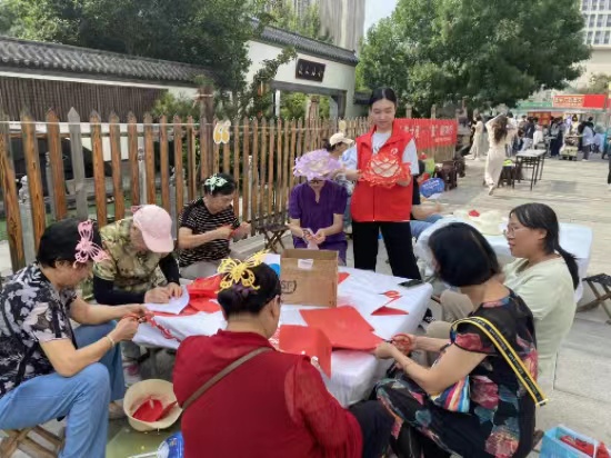 活动开始后,吸引了辖区内很多居民前来“赶集”,社工和志愿者们根据居民们的需求引导他们前往相应的服务点有序排队。在义诊区前围满了老年居民们,医生耐心地为居民们测量血压,根据居民们的自身情况给予他们建议和生活中需要注意的问题;在手工剪纸摊位前,居民们充分发挥自己的想象力,认真裁剪,不一会儿,一幅幅精美的剪纸作品就跃然眼前,居民们将剪纸作品用发卡固定戴在头上,当作装饰,也别有一番滋味;政策宣传区也吸引了不少居民前来体验和咨询。