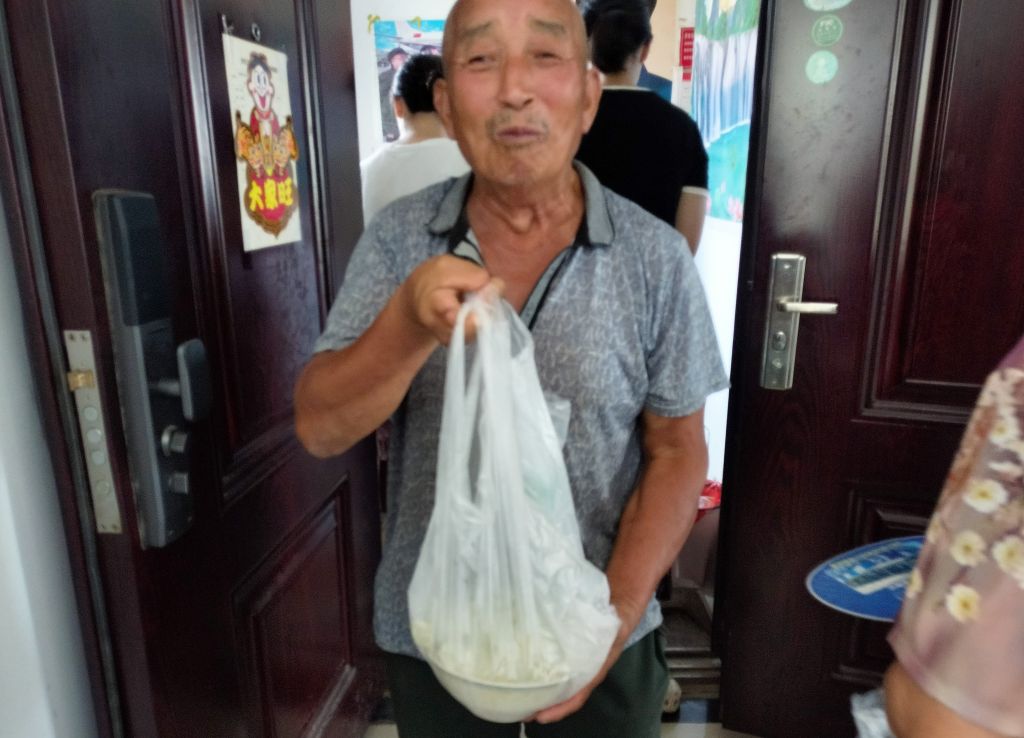 活动现场,社工和志愿者大家分工协作,热情高涨,揪剂子、擀皮、包饺子,大家忙的不亦乐乎。不一会,一个个精美的饺子摆满盖帘,两口锅同时煮饺子,很快就为大家端上来了热气腾腾的饺子,趁午饭时,社工和志愿者第一时间一起为前来参加活动的老人打包好饺子并送到老人手中。