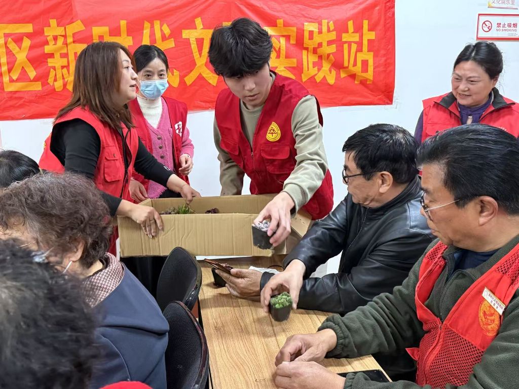 孟春之月,盛德在木。为共建绿色环保社区,增强老年人兴绿、植绿、护绿意识,3月11日,王官庄街道社工站联合十区社区、大学生志愿者开展“拥抱春天,为爱‘充’植”植树节多肉种植DIY志愿服务活动,旨在丰富老年人的精神文化生活,传递生态环境保护理念。