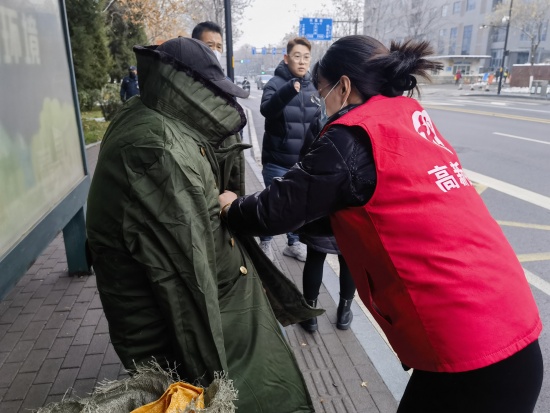 天寒人心暖 救助显真情 ——高新区舜华路街道社工站开展流浪人员救助工作