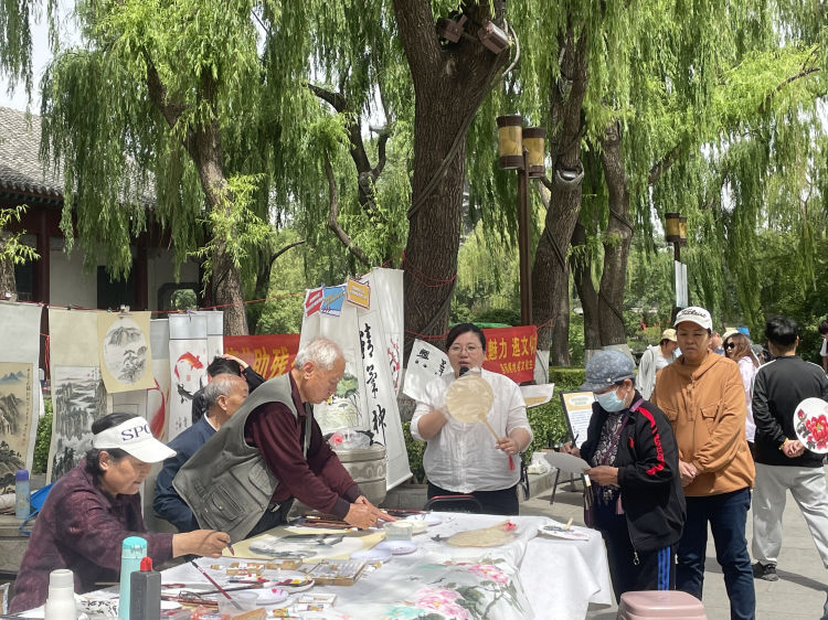 “书画义卖”摊位。山东汇泉书画苑的老年书画家们创作出一幅幅书法绘画作品,从刚劲有力的楷书到绘声绘色的水墨画,无不展现出创作者们的艺术风采。前来欣赏和购买的市民络绎不绝,他们表示这些作品不仅值得欣赏,而且也是一次献爱心、助力社区助残助困服务的好机会。不少市民和游客在山东大学志愿者的介绍和帮助下成功购买,以实际行动支持这次义卖活动。