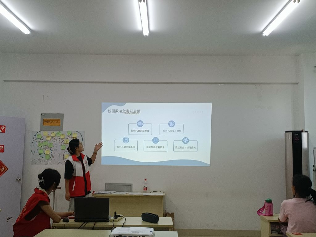 第二节小组活动围绕预防校园霸凌自护教育主题进行,社工向孩子们讲解了校园欺凌事件的危害,仔细介绍了欺凌事件的主要表现形式、强调了与同学相处需要注意的一些事情。并引导孩子们不要参与欺凌行为,一旦被欺凌就要及时采取适当方式解决。