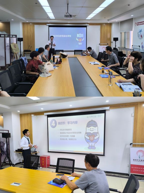 为持续提升社区老年群体智能手机操作技能,更好服务日常生活,5月30日,匡山街道社工站联合贝壳公益在老屯东路社区社工室开设第四节老年手机班课程。