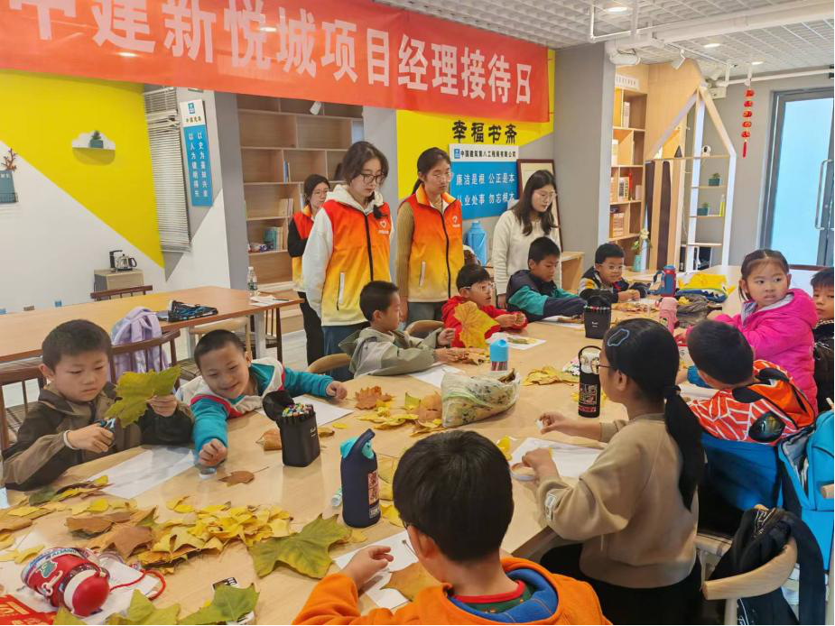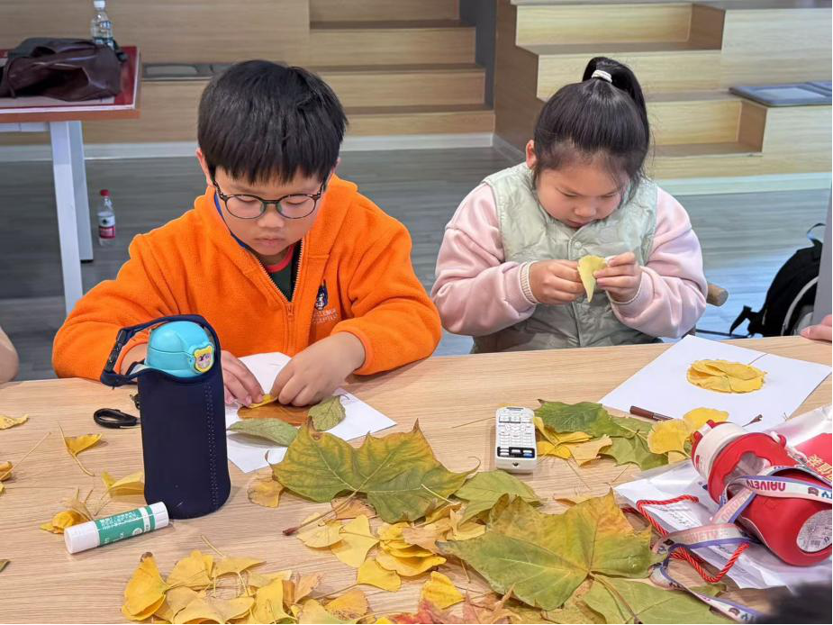 兴趣活动环节是秋词对流和树叶拼贴画。志愿者提前准备关于秋天的诗词或东西词,说出某诗句的上句或者表述该词语的相关相关特征,儿童抢答。这个环节不仅锻炼孩子们的思维敏捷度,用特别的互动方式引出活动主题,也在寓教于乐中丰富孩子们的知识储备,提高反应能力。树叶拼贴环节引导孩子们用不同形状和颜色的落叶拼贴出可爱的图案,让孩子们尽情发挥自己的想象力,比如可以用银杏叶做蝴蝶的翅膀,或者用较大的枫叶做屋顶,这也培养了孩子们的动手能力与创新能力,对于秋天的魅力有了更进一步的了解与感悟。
