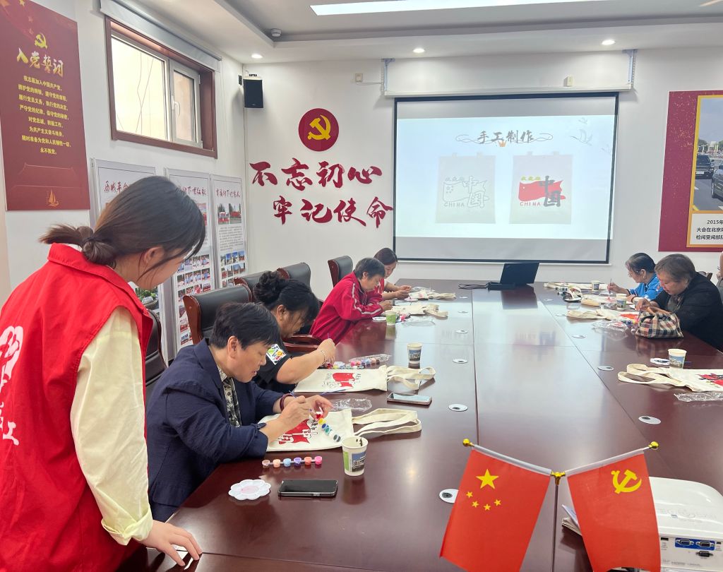 在国庆节来临之际,为进一步丰富辖区老年人精神文化生活,同时增进他们彼此间的情感交流与艺术享受,提升他们的归属感和幸福感。9月26日下午,社工站联合街道相关部门在街道便民服务中心开展了“帆布载祝福 同庆国庆辰”主题活动。活动开始,特邀的老师为老年人们进行了简短而精彩的绘画技巧讲解,并现场示范了如何在帆布包上绘制出精美的图案。随后老年人们纷纷拿起画笔,投入到创作之中。