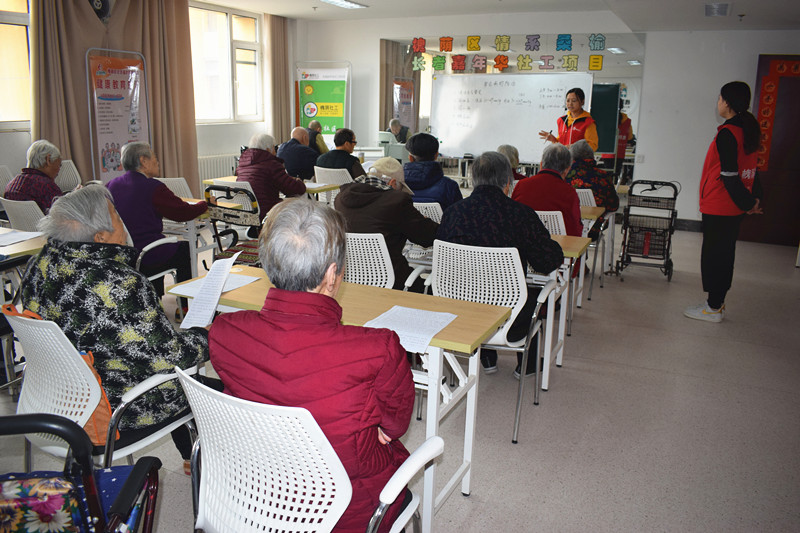 身体健康是老人安度晚年的前提,老年疾病种类繁多,社工专门就慢性支气管炎、高血压、冠心病、糖尿病和老年痴呆症这五大常见老年疾病向老人进行了有关定义、临床表现、防治方法的讲解。