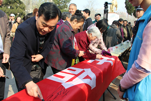 活动现场,志愿者代表进行了现场宣誓,到场群众纷纷在禁毒宣传条幅上签下自己的名字,表达自己与毒品斗争的决心。为弘扬红色精神,发挥红色文化的感染教育作用,引导群众感恩英烈、珍惜当下,志愿者现场发放了陵园《烈属寻亲》、《红色故事征集》等宣传材料,并耐心为群众解答了烈属寻亲的相关咨询。