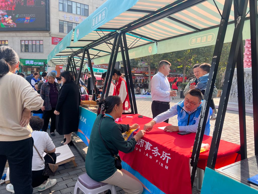 法律援助区内,律师们在现场认真耐心地为前来咨询的群众答疑解惑,帮助群众解决备受困扰的法律问题,引导群众学法、知法、守法、用法,运用法律知识维护自身合法权益。