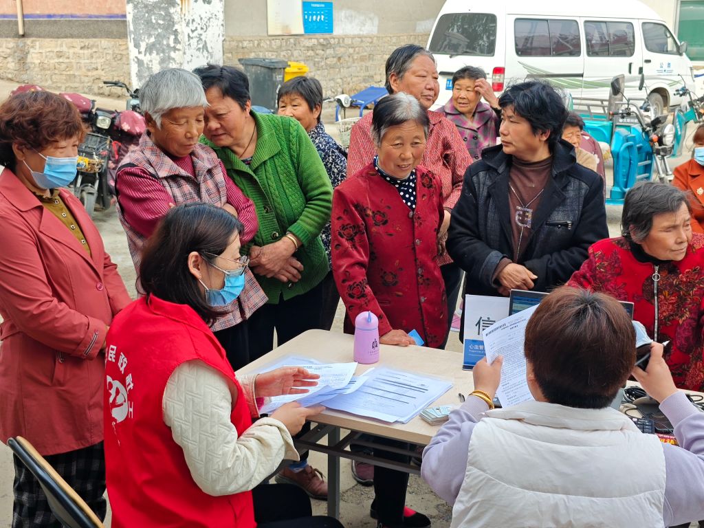 体检当天曹范社工与卫生院工作人员早早的到达村委并准备好各项体检设备及物资。不一会儿,在社工临时准备的体检区就围满了前来排队体检的居民,医务人员井井有序地为居民开展健康体检,社工协助医务人员核对居民信息,维持现场秩序。