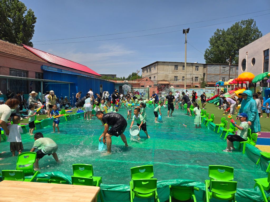 活动伊始,园长向全体小朋友送上了最美好的祝福与殷切的希望。在欢快的音乐声中,社工邀请家长一起进入水池,引导孩子与家长在水池中舞动,增强了亲子间的情感交流和默契。随后的水上滑梯和太阳伞活动,让孩子们玩得不亦乐乎,当工作人员通过泡泡机将无数的白色泡沫喷出,白色泡沫如同雪花飘落,泡沫里到处是泥鳅、小鱼,让孩子们回归自然,畅游在水的世界里,孩子和家长们打起水仗,将活动推向高潮。活动最后遥墙街道社工站为小朋友们送上了节日礼物,并送上了节日祝福。