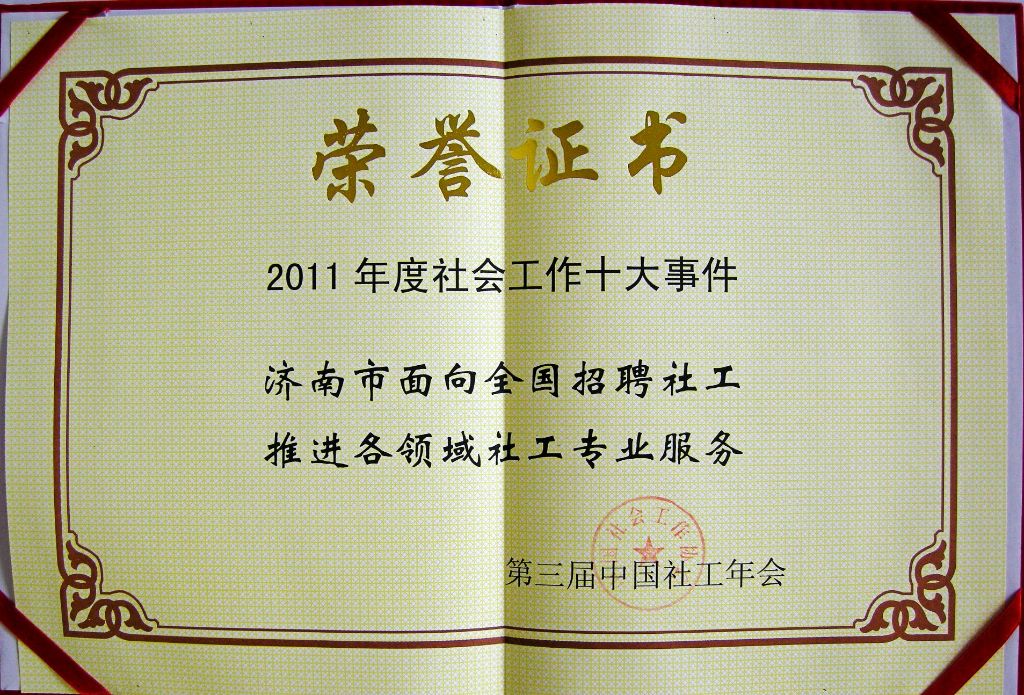 “济南市面向全国招聘社工 推进各领域社工专业服务”荣获2011年度社会工作十大事件