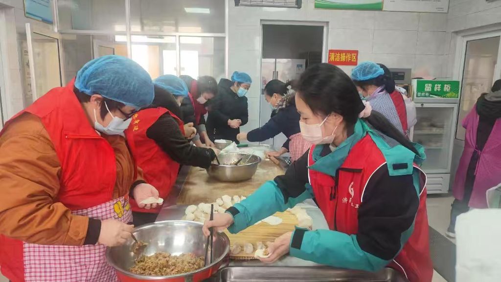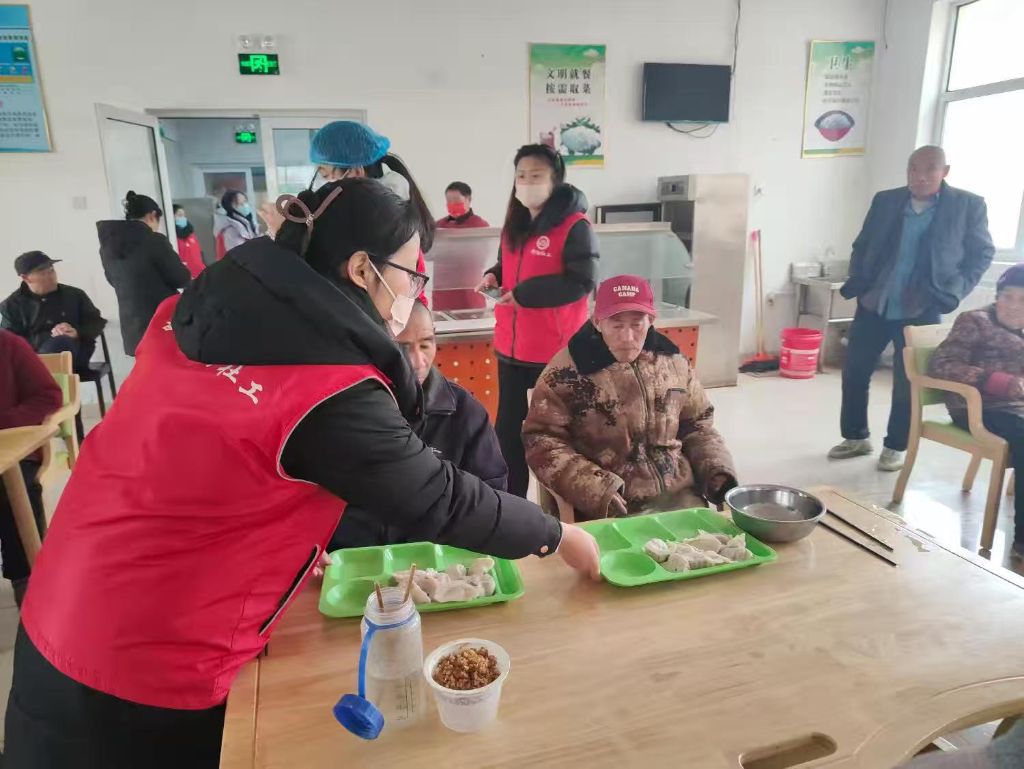 活动现场,志愿者们分工明确、配合默契,各道工序有条不紊地进行,忙得不亦乐乎。大家一边交流着包饺子的技巧和经验,一边分享着工作生活中的趣闻乐事,经过大家的共同努力,一个个馅料丰富、爱意满满的水饺很快就摆满了餐桌。饺子虽小,却饱含着关怀与热情,传递着爱与温暖。饺子煮好后,社工和志愿者将一碗碗热腾腾的水饺送到老人年面前,询问他们的身体状况和生活情况,叮嘱他们注意保暖和安全,为他们送上冬至的祝福与关怀。