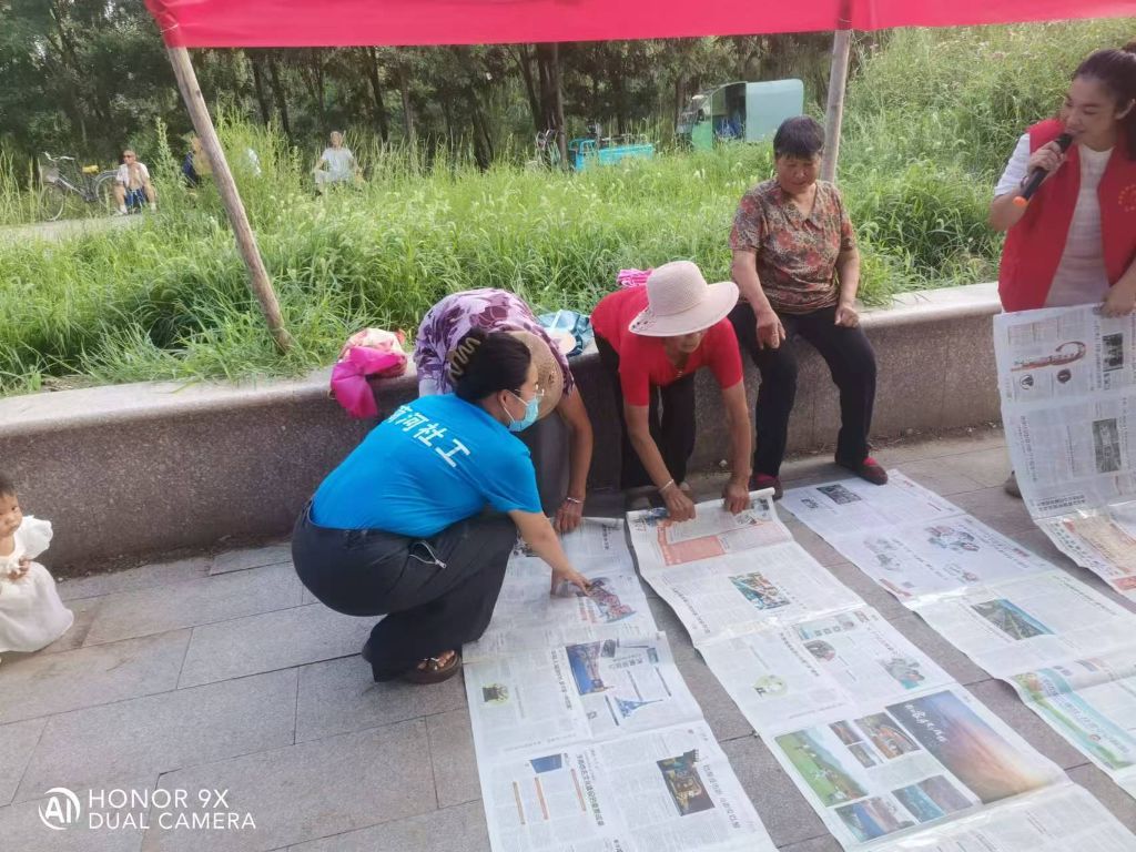 卷报纸比赛锻炼的是老年人的手脑协调能力和创造力,参加比赛的都是75周岁以上的老人。比赛开始后,老年选手们纷纷展现出各自的技巧和实力,赢得在场观众阵阵喝彩。两人三足两人三足