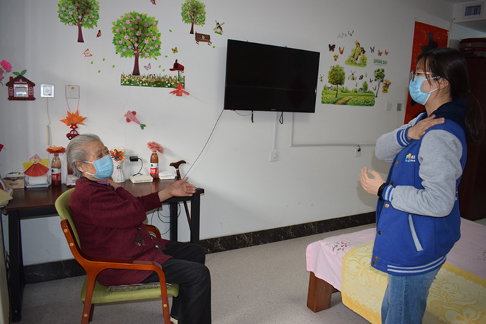 刘奶奶思念孩子却不会使用电子产品,社工便定期帮助刘奶奶和孩子们打电话、开视频。简奶奶喜欢看报纸,以前每天都会在娱乐室借助仪器看报,现在因为疫情不敢去公共场所,社工便分批次安排喜欢看书看报的老人使用仪器,同时做好了娱乐室和有关仪器的消杀工作。苏奶奶是社工的“忠实粉丝”,最喜欢参加活动,现在经常觉得无聊,社工便单独为老人开展了“一对一活动”,和老人一起做手指操、小游戏……