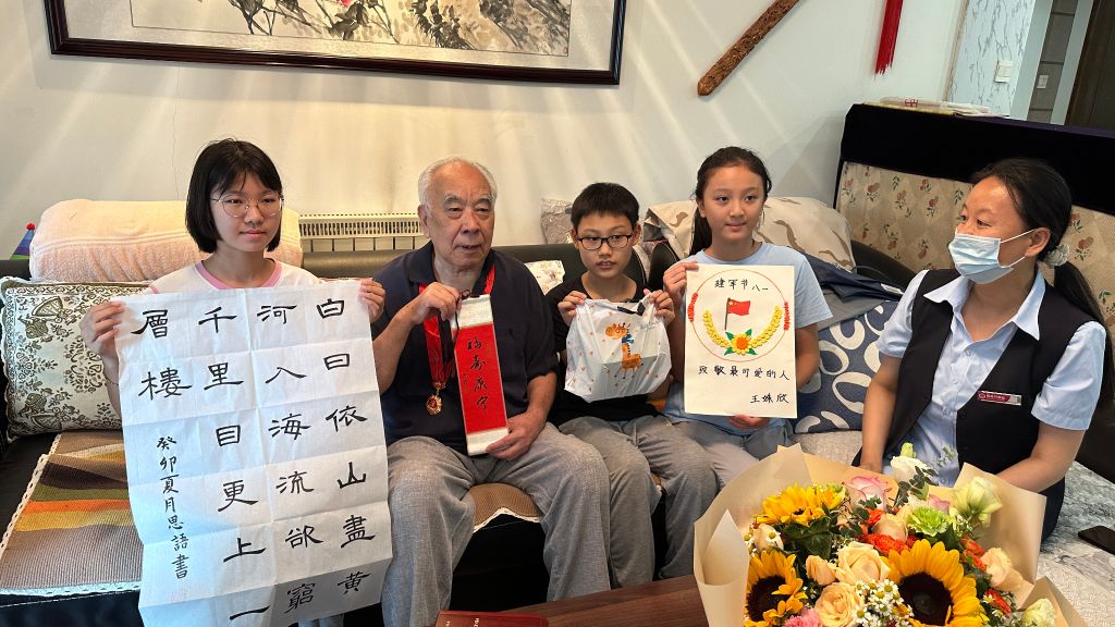 走访中,“老兵把子肉”的陈经理激动的说:“我是有情怀的,我也是退役军人,此时此刻不能表达我的心情,让我给老首长敬个礼吧!”随后,孩子们纷纷上前给爷爷献上节日的鲜花和自己准备的礼物。