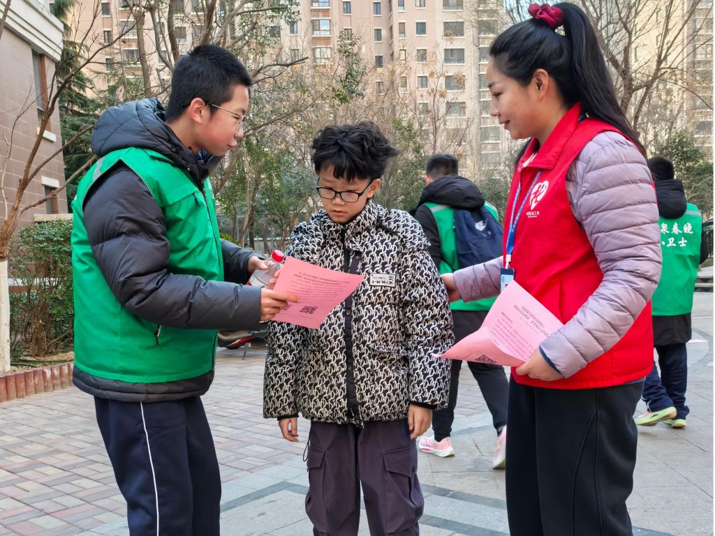 活动当日,在社工的引导下,宝华中学的小小志愿者们有序集合,了解社区布局与居民分布情况,明确与居民沟通的技巧及注意事项后,精神饱满地走进社区。他们手持宣传单,面带微笑,热情地向居民们介绍孝道文化。