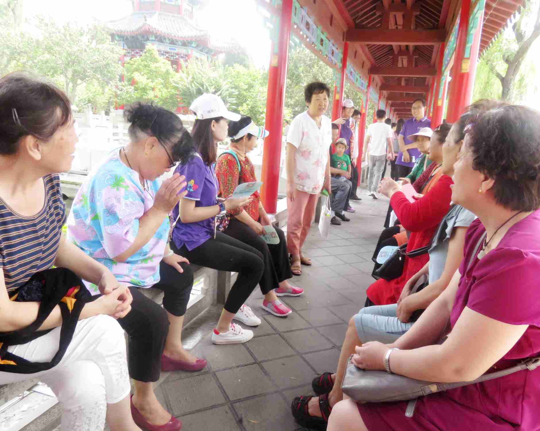 为确保服务对象安全,社工组织大家在指定地点集合然后一同乘车去往大明湖公园,在途中为了缓解旅途中的无聊,大家进行了“粽香十里”和“名扬天下”趣味活动,在大家的欢声笑语中很快便到达了目的地。天气炎热,为防止大家中暑,社工为大家分发了藿香正气液,随后有序组织大家进园参观。游园过程中有对大明湖公园熟悉的社区居民主动当起了导游,为大家介绍大明湖的故事,让大家对大明湖有了更深层次的了解。