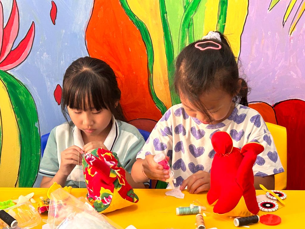 随后,社工们向孩子们介绍了枣庄李氏传统布艺——布老虎的历史渊源和制作技巧。孩子们听得津津有味,对这一传统手工艺的精湛技艺赞叹不已。在社工的指导下,孩子们动手制作布老虎,他们小心翼翼地缝制、粘贴,每一个动作都透露出对传统文化的尊重和热爱。