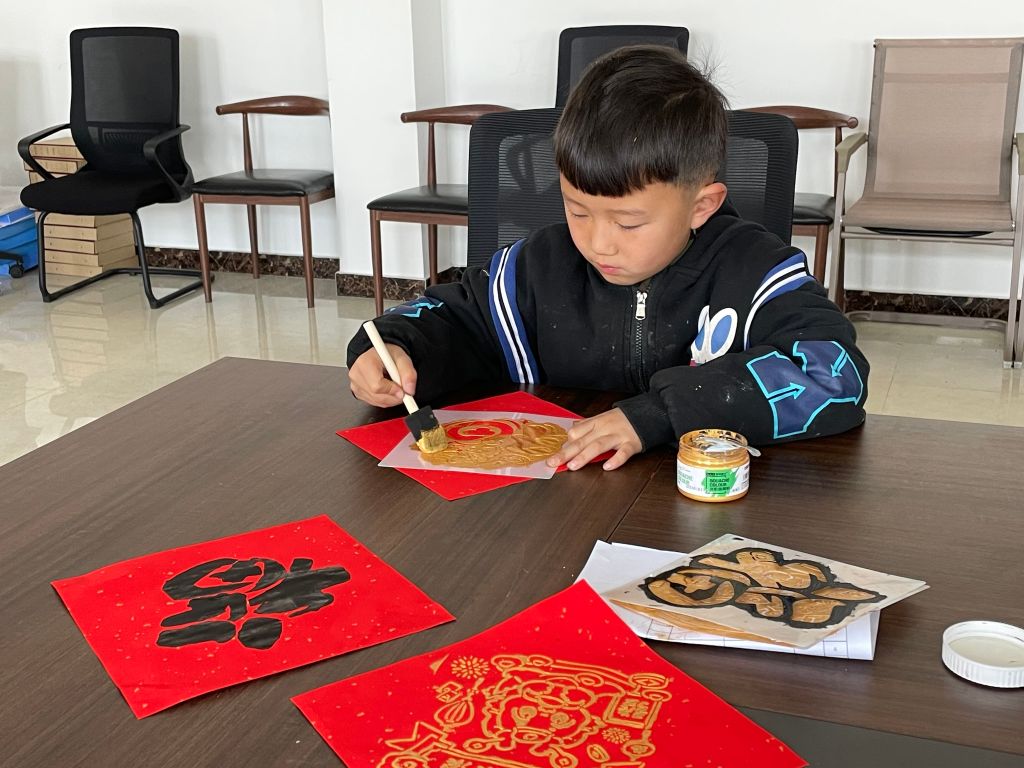 拓印福字是传统文化中的一种祈福方式,寓意着人们对美好生活的追求和向往。活动开始前,社工向孩子们介绍了拓印福字工艺方法和福字的演变及其在传统文化中的重要地位。通过讲述福字的背后故事,让孩子们更加深入地理解福字所蕴含的吉祥、幸福和美好愿景。随后,社工为孩子们准备了拓福字所需的工具和材料,包括宣纸、墨汁、福字模板等。在社工的耐心指导下,孩子们纷纷动手尝试拓印福字。他们认真地涂抹墨汁,小心翼翼地将宣纸覆盖在模板上,然后用刷子轻轻按压,使墨汁均匀渗透到宣纸中。经过一番努力,一幅幅充满年味的福字作品在孩子们的手中诞生。活动中,孩子们互相交流、分享自己的作品,气氛热烈而欢乐。