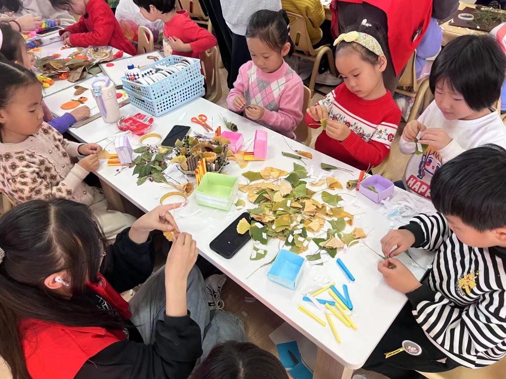 随后志愿者将事先准备的树叶及孩子们自行捡拾的树叶、框纸、太空泥、儿童剪刀、胶水等工具分发给孩子们,并向孩子们详细讲解了树叶贴画的制作步骤与技巧,基于“每一位孩子都是独一无二”的目标出发,引导孩子们思考生活中的美,充分发挥想象力,制作属于自己的作品。