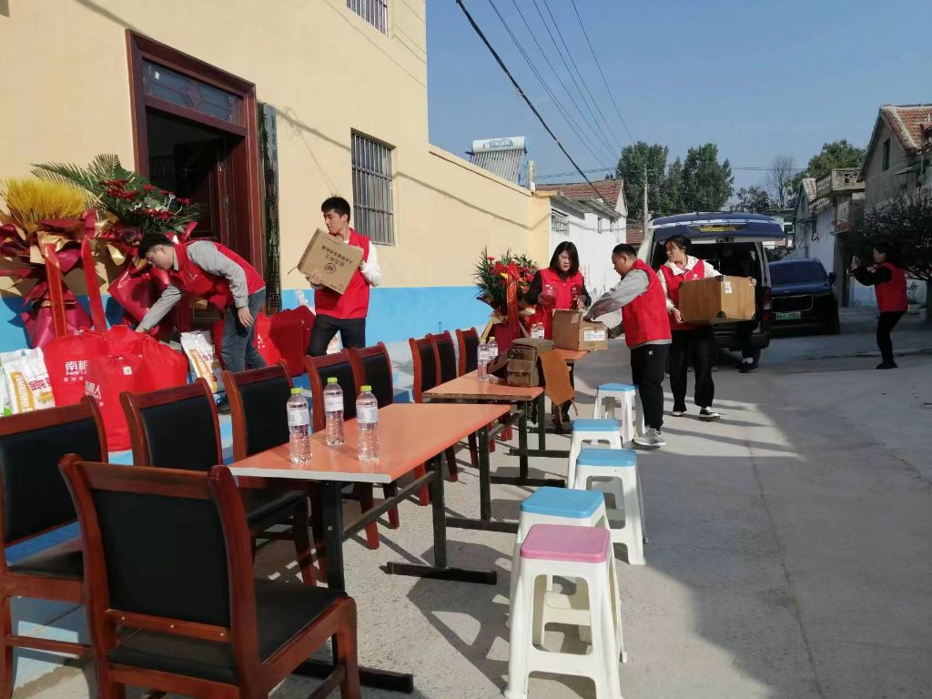在重阳节来临之际,为弘扬中华民族爱老敬老的传统美德,丰富辖区村居老人文化生活,董家街道社工站联合齐鲁制药善行团来到曹家村看展健康慈善走访慰问活动。齐鲁制药对董家街道辖区居民十分重视,善行团由齐鲁制药副总经理徐勤亮带领,携手办公室主任孔令霞、药物警戒部经理曲满红等一行人,为曹家村村民带来一场健康义诊活动,为曹家村村民的健康生活保驾护航。