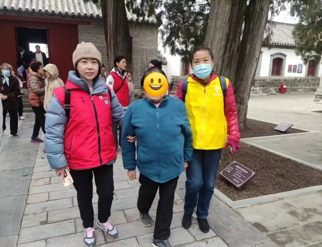 雨后的华山,空气清新,春风和煦。搀扶残疾人下车后,社工将照顾残疾人工作,“一对一”分配给志愿者们,确保每一位残疾人都能在志愿者们的帮助下,顺利游览华山美景。腿脚不便的残疾人,社工为其安排了专人陪伴并放慢了游览的脚步,他们或驻足观赏,或拍照留念,尽情享受着春天的美好时光。