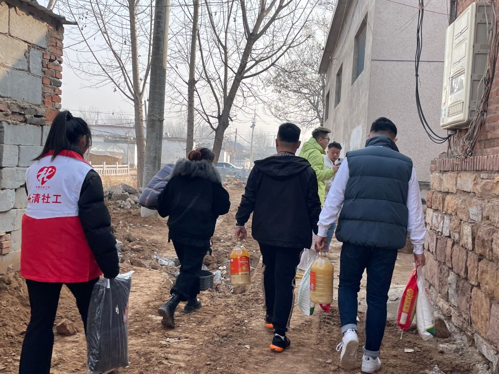 为提高困难群众的生活幸福指数,切实做好困难群众的兜底工作,近日,马山镇社工站链接灵岩扎啤、包包汁等慈善资源,联合马山镇民政所,前往东褚科村,为困难群体送去冬日的关怀,将花生油、大米、面粉、羽绒服、棉被与温暖问候送到困难群众的家中。