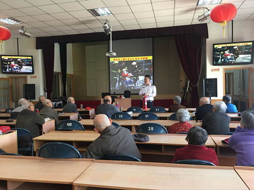作为高龄群体的军休干部,普遍存在行动不便,遇事反应不灵敏,防火安全意识薄弱,救火避难能力差的特点。为了有效的预防火灾事故,提高他们的消防观念和火场逃生自救能力,近日,军休五所的社工邀请了山东省政安防火培训中心主任迟世伟为军休干部们上了一堂生动的消防安全课。
