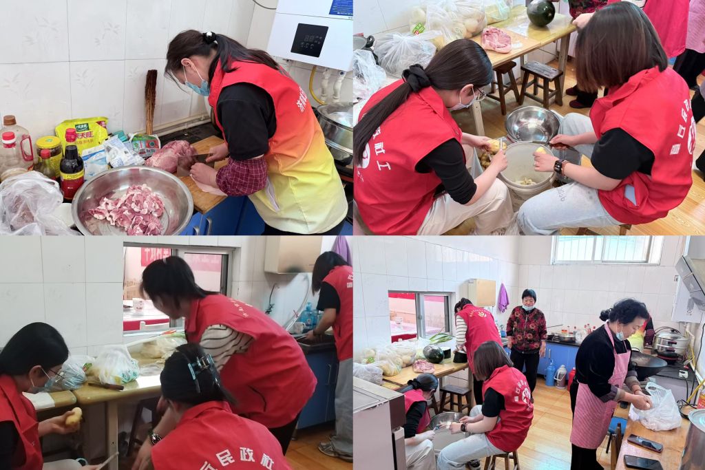 一大早,社工和志愿者就钻进幸福院的厨房忙活起来。洗菜、切肉、炖汤……锅铲声、说笑声混成一片。“土豆多炖会儿,老人吃着软和!”“菜里少放盐,健康!”社工小刘边忙边叮嘱。不一会儿,猪肉炖土豆的香味飘满院子,老人们抽着鼻子直乐:“闻着就馋人!”