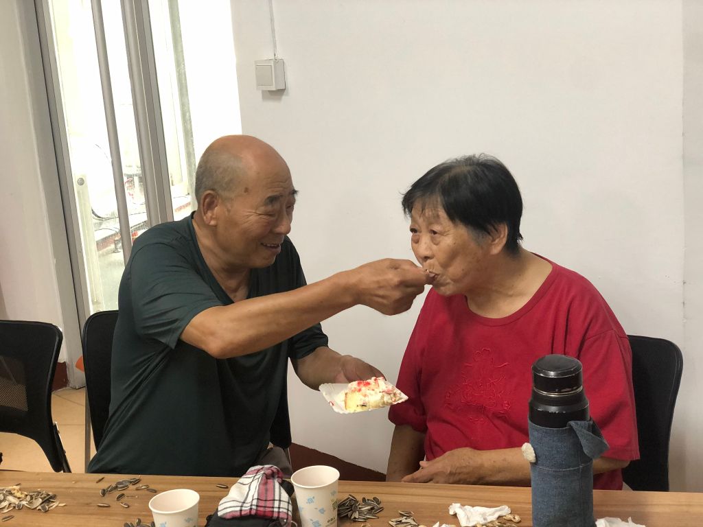 活动第一项节目,邀请每一对夫妇上台,手拉着手大声表达爱意。“我爱你,老伴!希望咱们可以再走几十年!”每一对老人都相互诉说着爱意,大家温情的笑声充斥着整个活动现场。