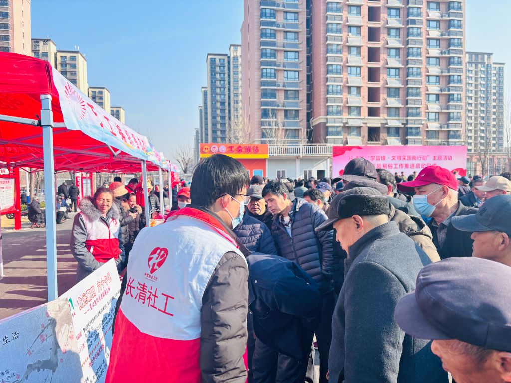 2025年3月5日,科普文化广场上人头攒动,热闹非凡。“学雷锋·文明实践我行动”主题活动暨移风易俗工作推进会在这里隆重举行。平安街道社工站链接山东慧心慧做家政服务有限公司,带来了“慧心巧编”和“养老助餐车”两个特色项目,吸引了众多居民驻足咨询。