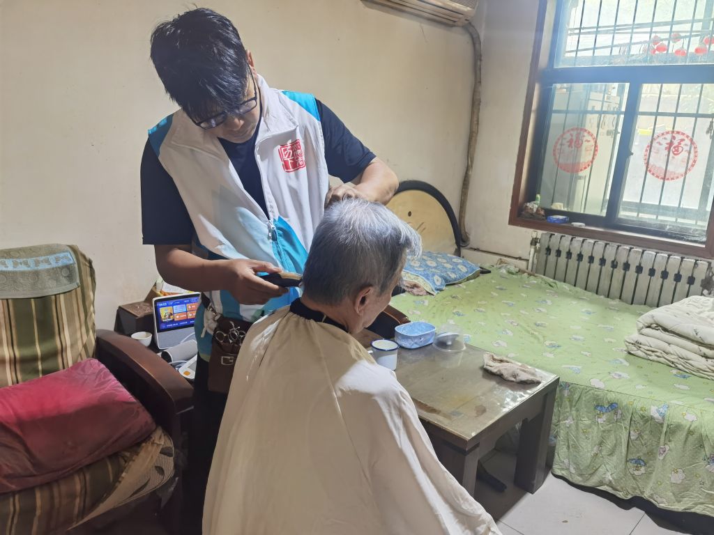 “上次你们来理发,我还以为只是搞一次活动,没想到只要有需要,你们就能上门来为我们这些上了年纪的老年人服务,真是太贴心了!”得知自己成功预约入户理发服务,家住历山社区的高龄老人郭叔叔一大早便将头发清洗干净,等候着社工站社工和志愿者的到来。一把推子,一把梳子,一个“居家理发店”就正式开业了,唰唰唰,灵活的剪刀在头发中飞快地穿梭着,不一会儿,杂乱的头发变得清爽利落起来,郭叔叔连胜称赞志愿者细心的态度和高超的技艺,感谢社工关注老年人的点滴小事,用心用情传递对老年人的温暖和关怀。