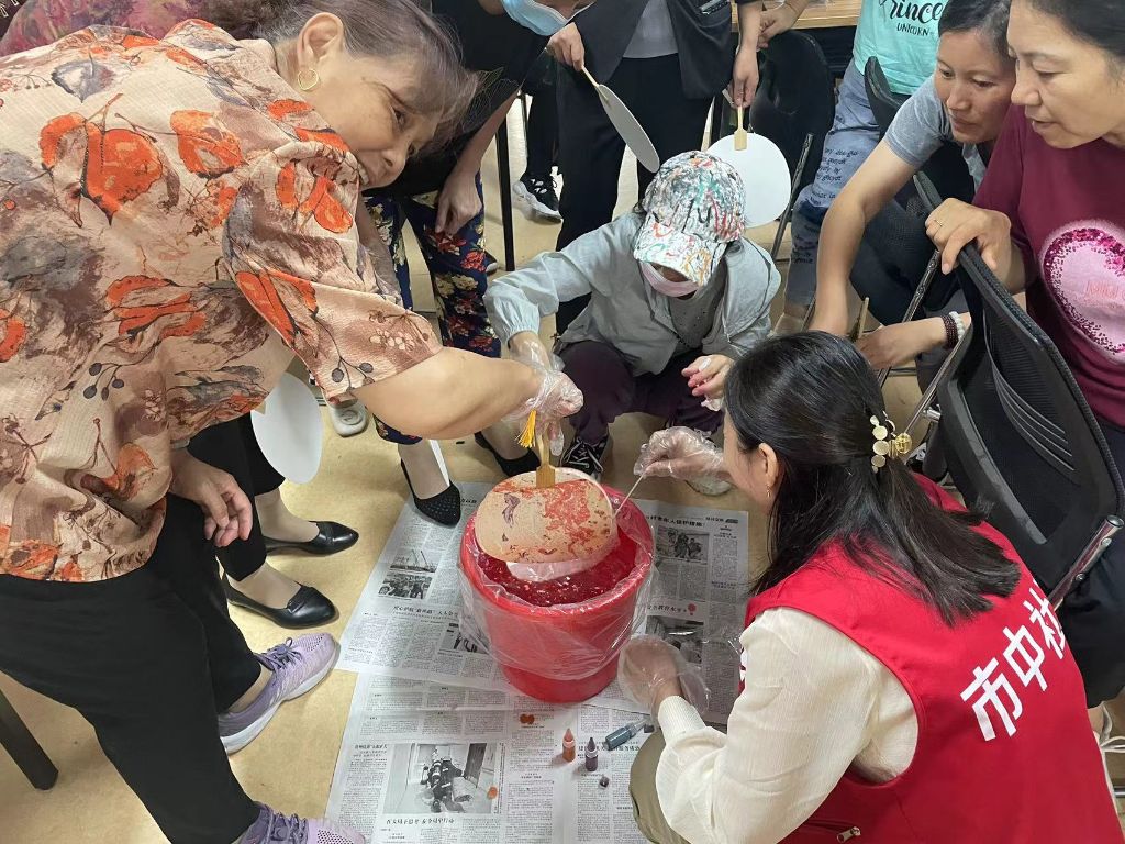 “漆”彩重阳,岁月留香——王官庄街道社工站开展老年人漆扇制作体验活动