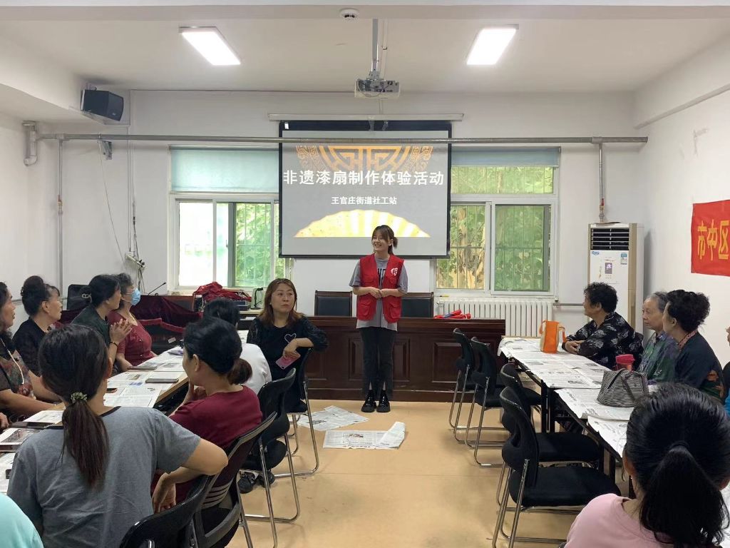 秋意渐浓,重阳佳节将至。为弘扬中华民族尊老、敬老、爱老的传统美德,丰富老年人的精神文化生活,王官庄街道社工站于10月8日,联合十区社区共同举办了一场别开生面的“‘漆’彩重阳,岁月留香”重阳节漆扇制作体验活动。本次活动吸引了众多老年人的热情参与,共同在扇面上绘就了一幅幅绚丽的文化图景。