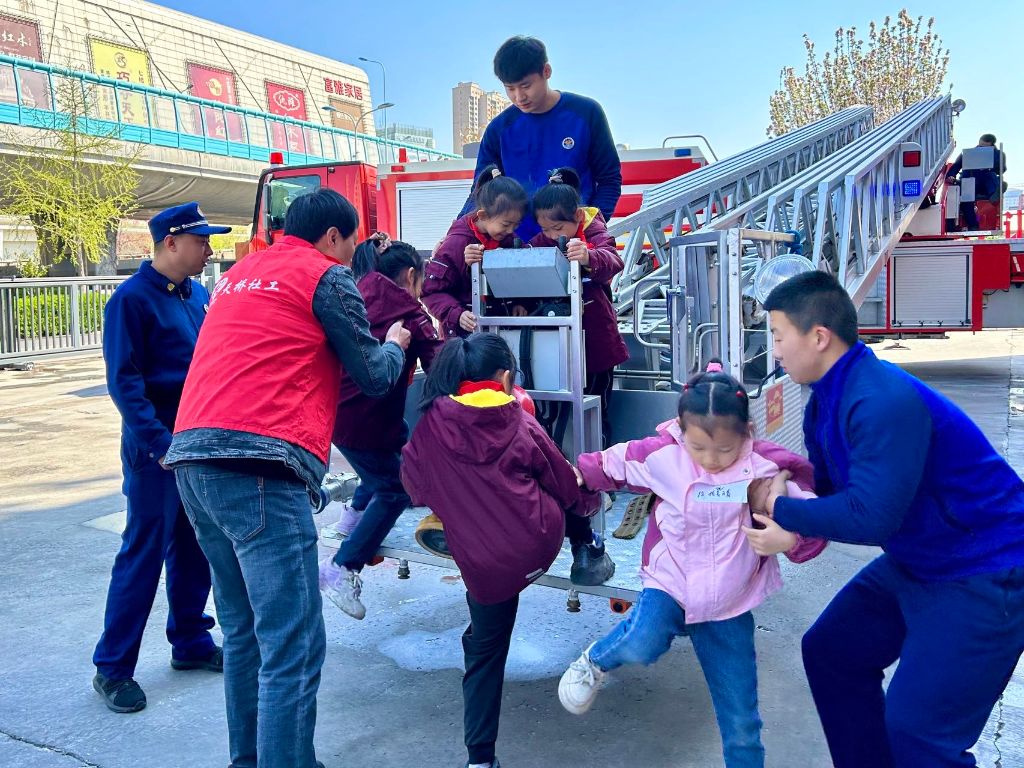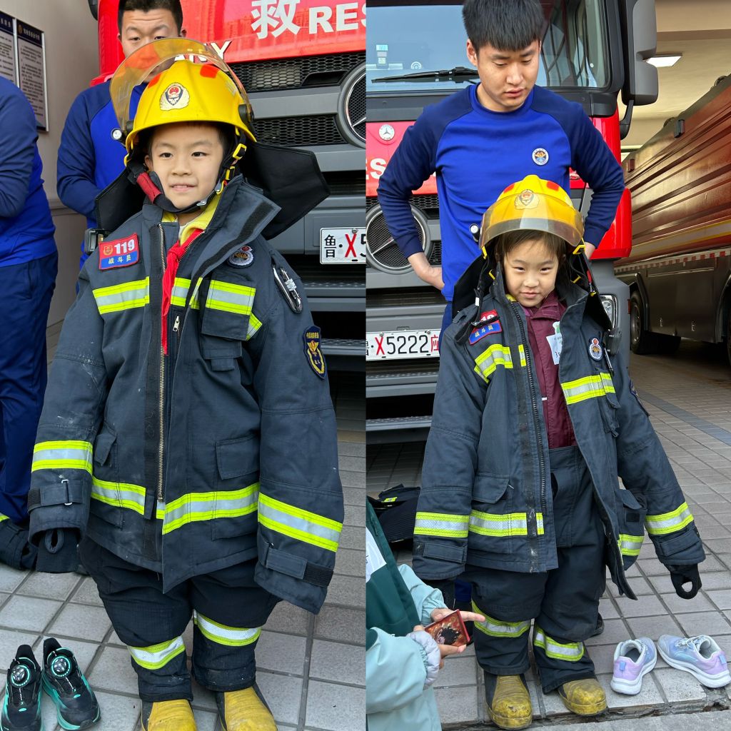最让小志愿者激动的是,他们有机会试乘消防车和消防云梯,还亲自试穿了消防服。在消防官兵和社工的引导下,小志愿者们依次登上消防车,感受着消防车那宽阔的视野。随后,又带他们到消防云梯下,看着云梯缓缓升起,心中充满了惊奇和期待。当轮到自己试乘云梯时,小志愿者们更是兴奋不已,他们紧紧抓住扶手,随着云梯的升高,眼前的景象也变得越来越壮阔。此外,小志愿者们还亲自试穿了消防服,沉甸甸的装备让他们深刻体会到了消防员们在日常工作中的艰辛和不易。这次试乘和试穿经历,让小志愿者们更加敬佩消防员们的勇敢和无私,也激发了他们对消防工作的浓厚兴趣和热爱。