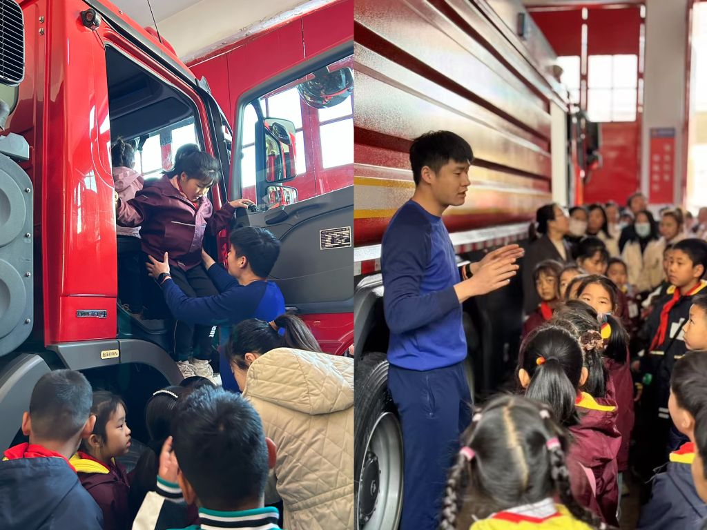 活动中,社工时刻组织好小志愿者们的秩序,跟随消防官兵们参观了消防车库,消防官兵详细介绍了各种消防车辆的功能和用途。小志愿者们围着消防车,仔细观察着车上的每一个设备,听着消防官兵的讲解,不时提出自己的问题,展现出浓厚的兴趣。随后,消防员们还现场演示了如何快速穿戴消防装备,小志愿者们看得目不转睛,纷纷表示要学习这种迅速反应和严谨的态度。
