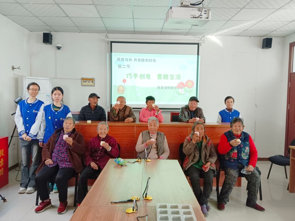 为丰富农村留守老人的晚年生活,增进老人之间的情感交流。10月24日美里湖街道社工站赴北王村幸福院,面向10余名农村留守老人开展《美美与共,共享晚年时光——农村独居老年人精神关爱小组》第二节:巧手创皂,耆趣生活主题活动。