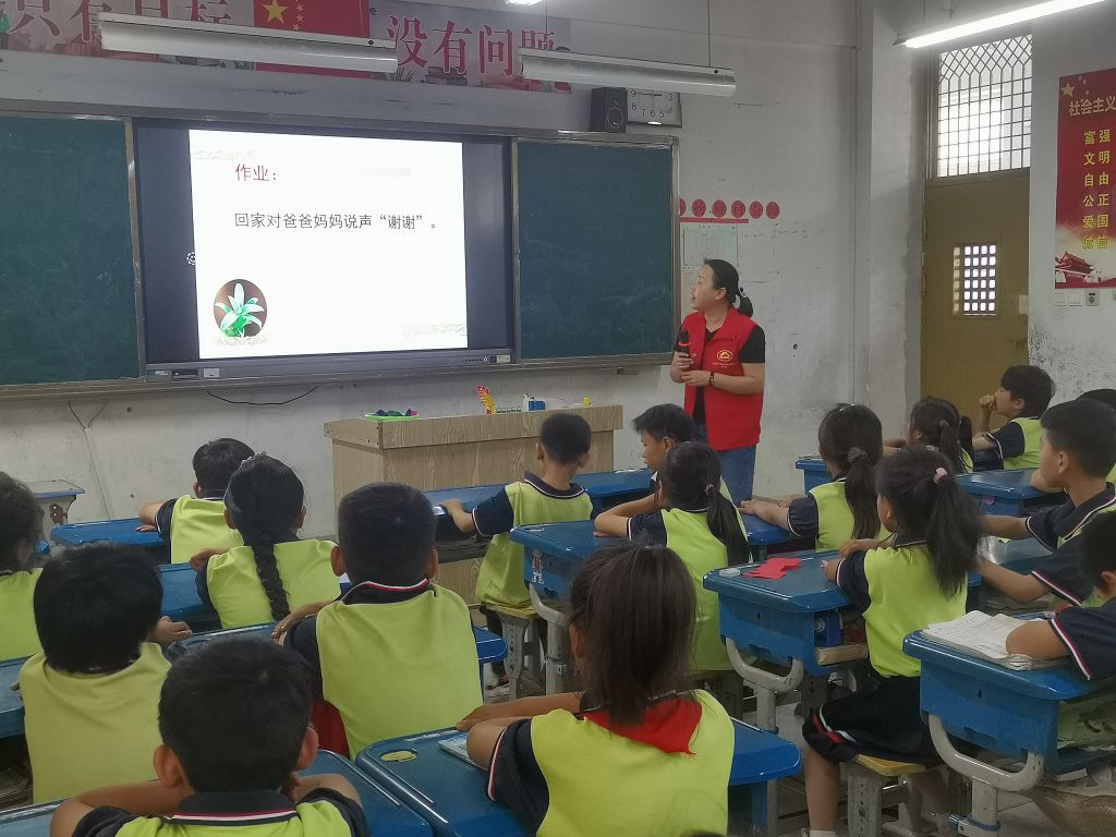 其次由计生协工作人员开展了家庭教育主题活动,主要围绕“感恩”一词,让孩子们自由诉说在学习和生活中应该对谁表示感恩,应该如何感恩。并请孩子们在课下对需要感恩的人说一声“谢谢”。