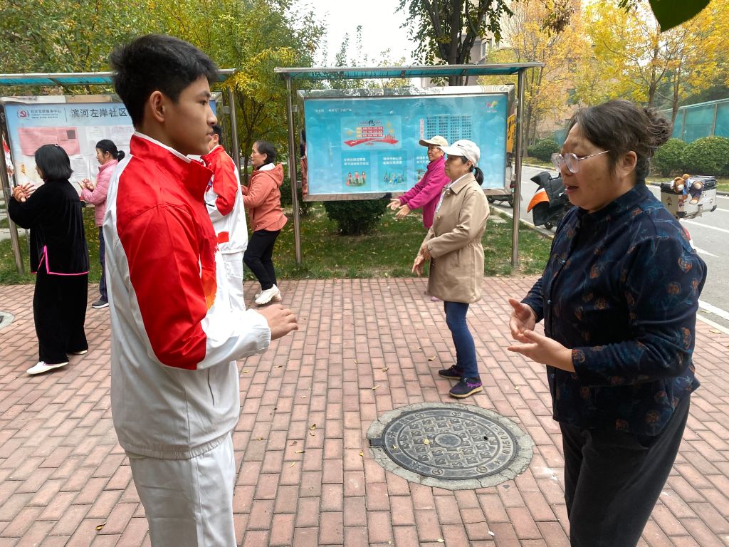 活动一开始,教练们耐心细致地讲解每一个动作的要领和注意事项,确保居民们能够准确掌握。随后,教练们亲自示范,他们的动作流畅自然,气韵生动,随着教练的示范,居民们纷纷起身,跟随着节奏,开始了八段锦的练习。他们或挥动手臂,或转动身体,每一个动作都透露出一种从容与自信。